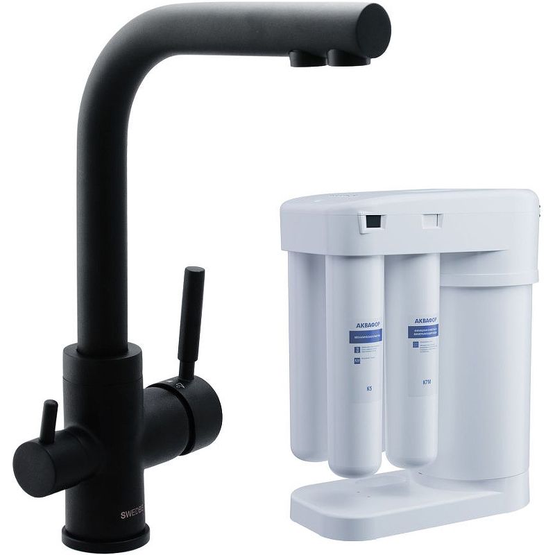 Смеситель для кухни Swedbe Selene Plus K8149M в комплекте с фильтром Аквафор Морион чёрный матовый купить