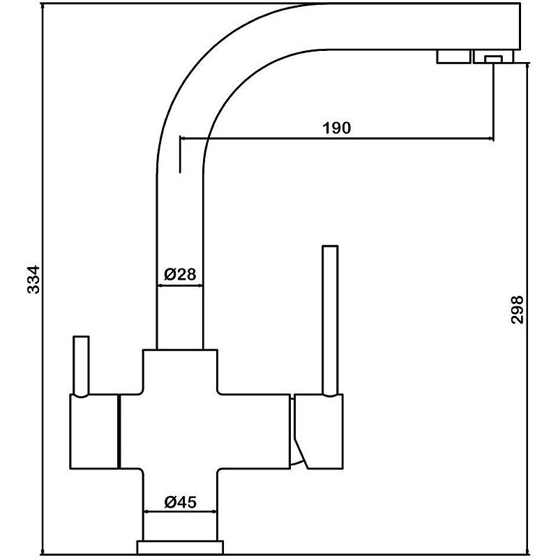 • Высота смесителя: