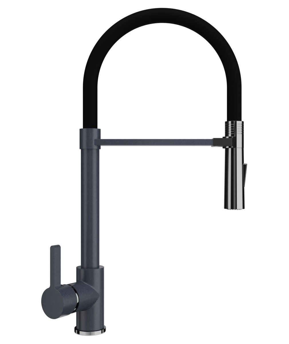 Смеситель для кухни Ulgran Classic U-024-343 с высоким гибким изливом антрацит