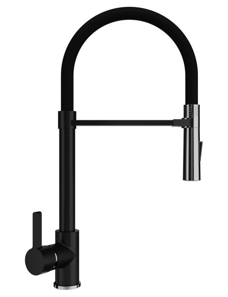 Смеситель ULGRAN U-024 – это стильный и современный кухонный смеситель с высоким гибким изливом черного цвета. Материал корпуса выполнен из высококачественной латуни, сверху корпус смесителя имеет специальное черное матовое покрытие.