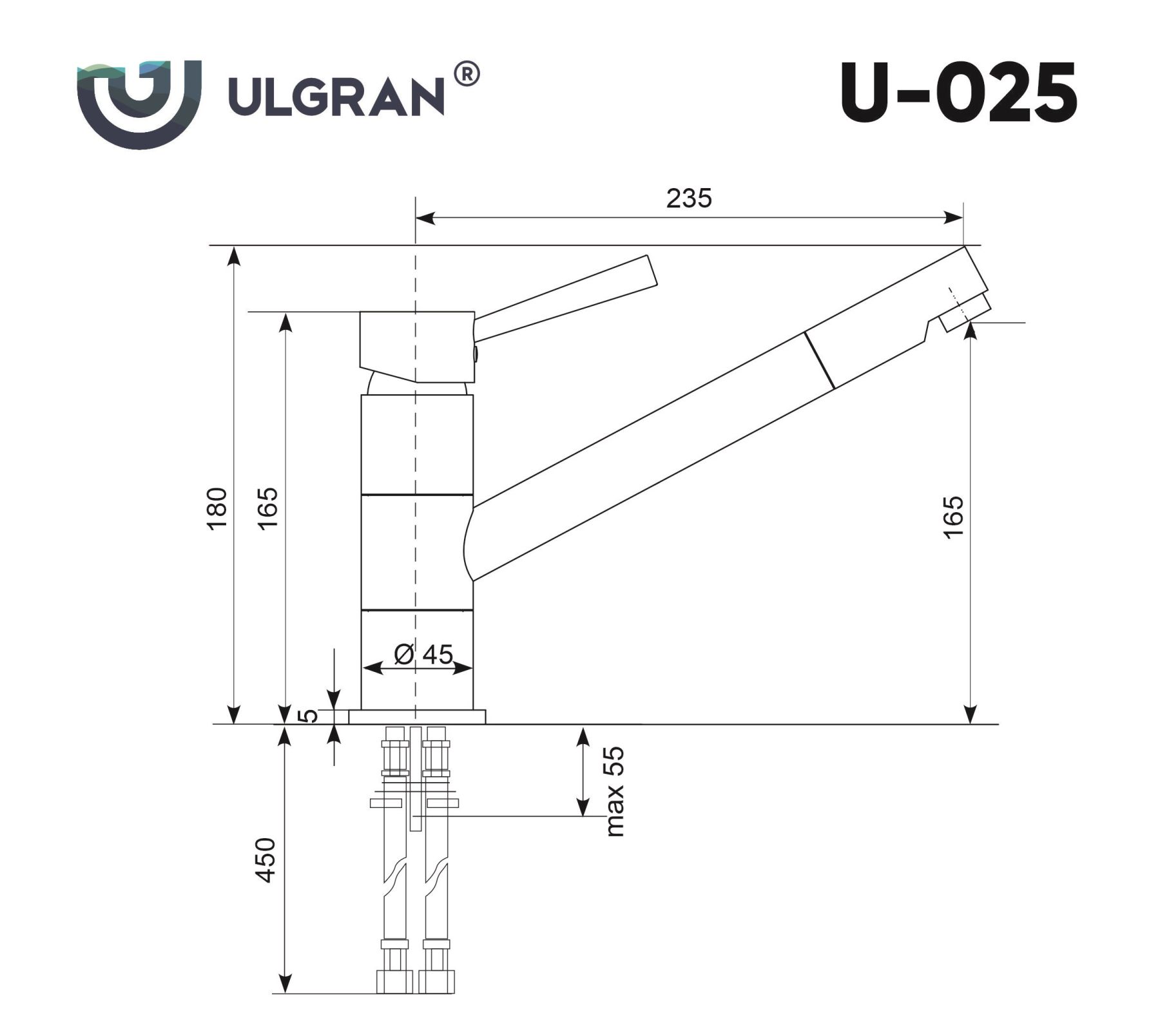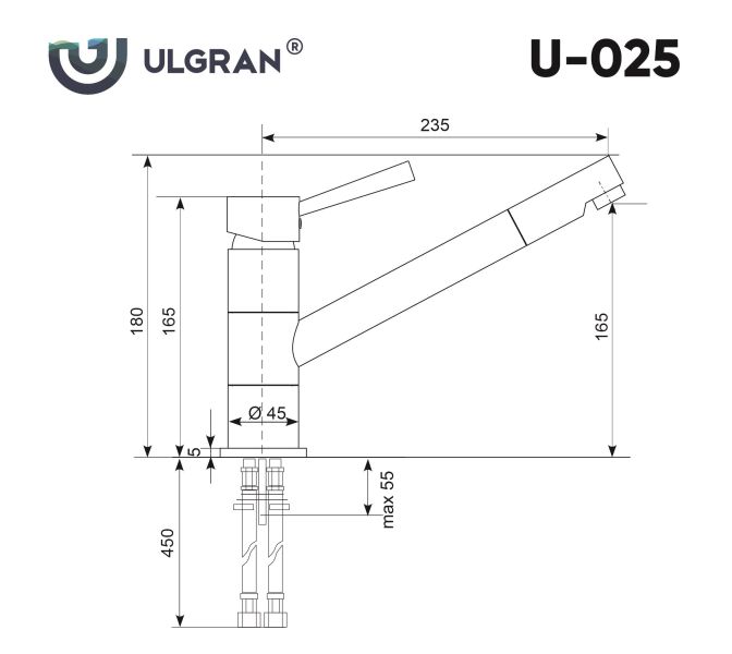 ULGRAN U-025 – удобный классический кухонный смеситель с низким поворотным изливом. Материал корпуса выполнен из высококачественной латуни, а окрашивание под «искусственный камень» в цвет мойки ULGRAN выполняется на собственном производстве, что позволяет идеально попасть в фирменный цвет ULGRAN. В качестве керамического картриджа используется известный бренд Wanhai диаметром 40 мм с высокой пропускной способностью в 500 тысяч циклов «открывания-закрывания». На подвижные части картриджа Wanhai нанесена специальная невымываемая силиконовая смазка, а керамические пластины изготовлены из 96% оксида алюминия, что, в сочетании с высоким качеством шлифовки обеспечивает долговечность, надежность, плавность хода рукоятки. Смеситель оборудован съемным пластиковым аэратором для экономии воды и поворотным изливом на 180 градусов. В комплектацию входят: керамический картридж Wanhai, гибкая подводка 450 мм, комплект крепежных элементов, технический паспорт и гарантийный талон. Заводская гарантия составляет 3 года на материал корпуса, 1 год на комплектующие к смесителю и 1 год на материал покрытия.