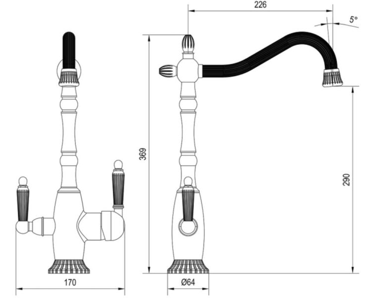 • Высота смесителя: