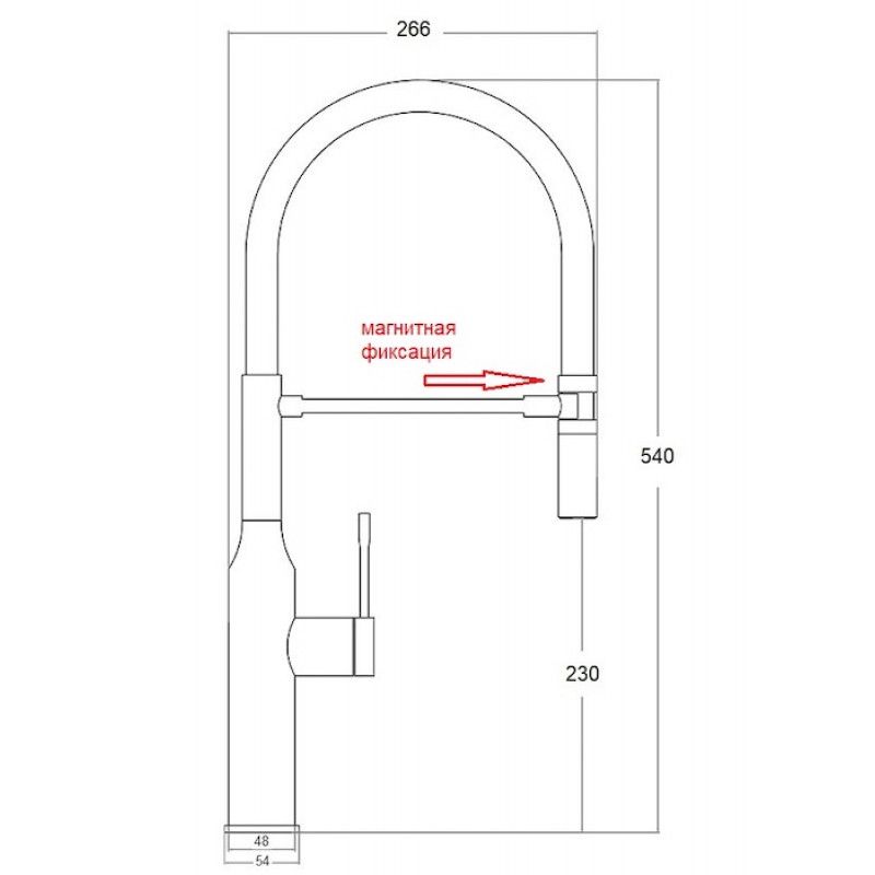 Главой особенностью данного смесителя является надёжная фиксация: крепление гибкого излива с помощью магнитного держателя. Надежный механизм быстро зафиксирует излив стоит только поднести его к держателю.Сам гибкий излив из силикона, что обеспечивает оптимальный диапазон движения шланга, благодаря чему можно без труда мыть габаритную посуду либо наполнять высокие емкости, находящиеся на столешнице или плите.Особенности:
