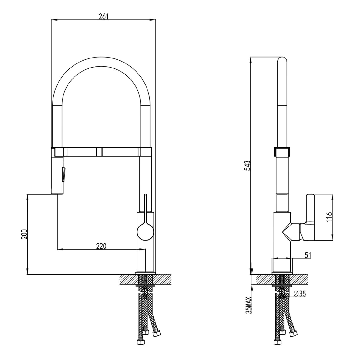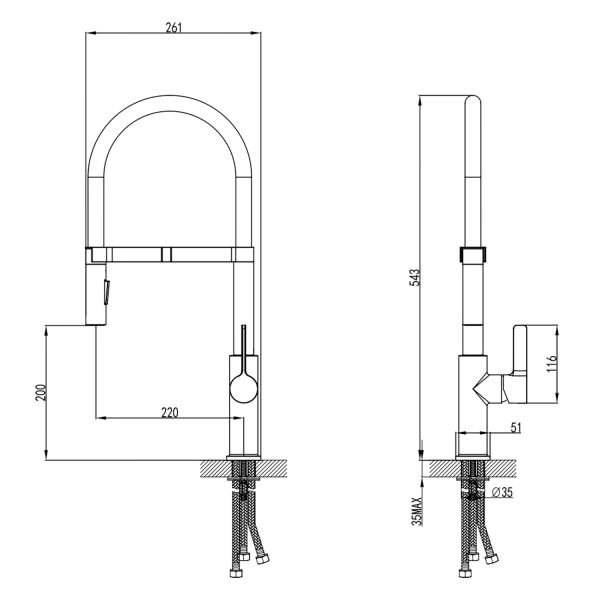 Выдвижной излив:нет