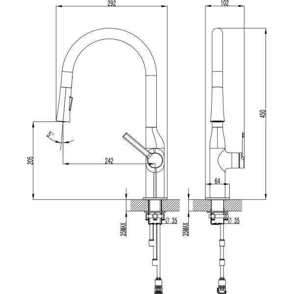 Смеситель для кухонной мойки Azario VINCENTE AZ-VPV569064PA выдвижной излив