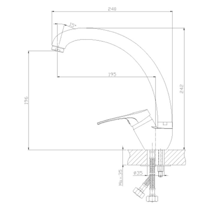 Смеситель Rossinka B35-25 для кухни.Пластиковый аэратор с функцией легкой очистки, керамический картридж 35 мм, гибкая подводка 35 см – 2 шт. Присоединительная группа для горизонтального крепления