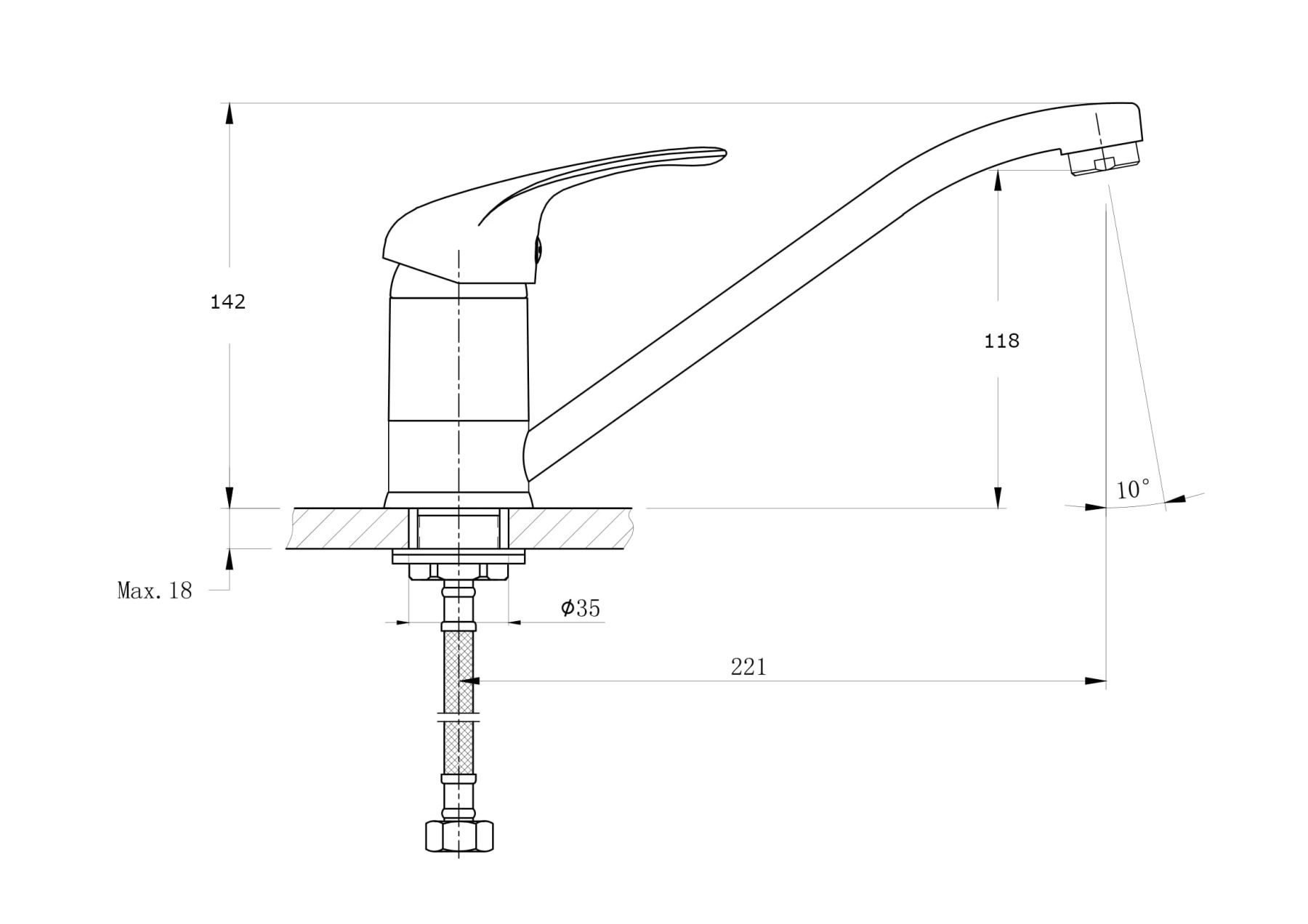 Смеситель для кухни с поворотным изливом RUSH арт.CO4240-27 из коллекции Corsica c металлической ручкой имеет рычажное управление.В смеситель установлен картридж D-40 (RSH202) с керамическими пластинами. Излив поворотный 360гр, 221мм. Высота излива до аэратора 115 мм. Аэратор изготовлен из пластика с нержавеющим корпусом, угол наклона аэратора- 10 гр.В комплекте гибкая подводка с латунными гайками 35см - 2 шт, присоединительная гайка S-30мм, втулка-27мм, фум-лента, индивидуальный пакет, паспорт, гарантийный талон.