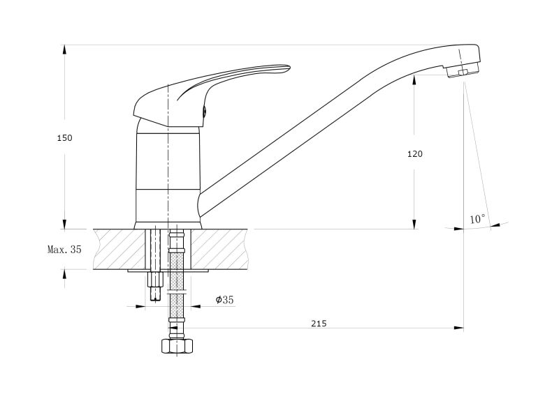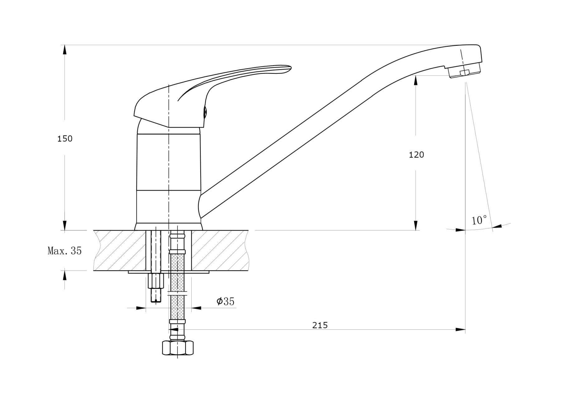 Смеситель для кухни с поворотным изливом RUSH арт.CO4240-28 из коллекции Corsica c металлической ручкой имеет рычажное управление.В смеситель установлен картридж D-40 (RSH202) с керамическими пластинами. Высота смесителя 126 мм. Излив поворотный 360гр, 221мм. Высота излива до аэратора 115 мм. Аэратор изготовлен из пластика с нержавеющим корпусом, угол наклона аэратора- 10 гр.В комплекте гибкая подводка с латунными гайками 35см - 2 шт, универсальная присоединительная группа(шпилька-2шт), фум-лента, индивидуальный пакет, паспорт, гарантийный талон.