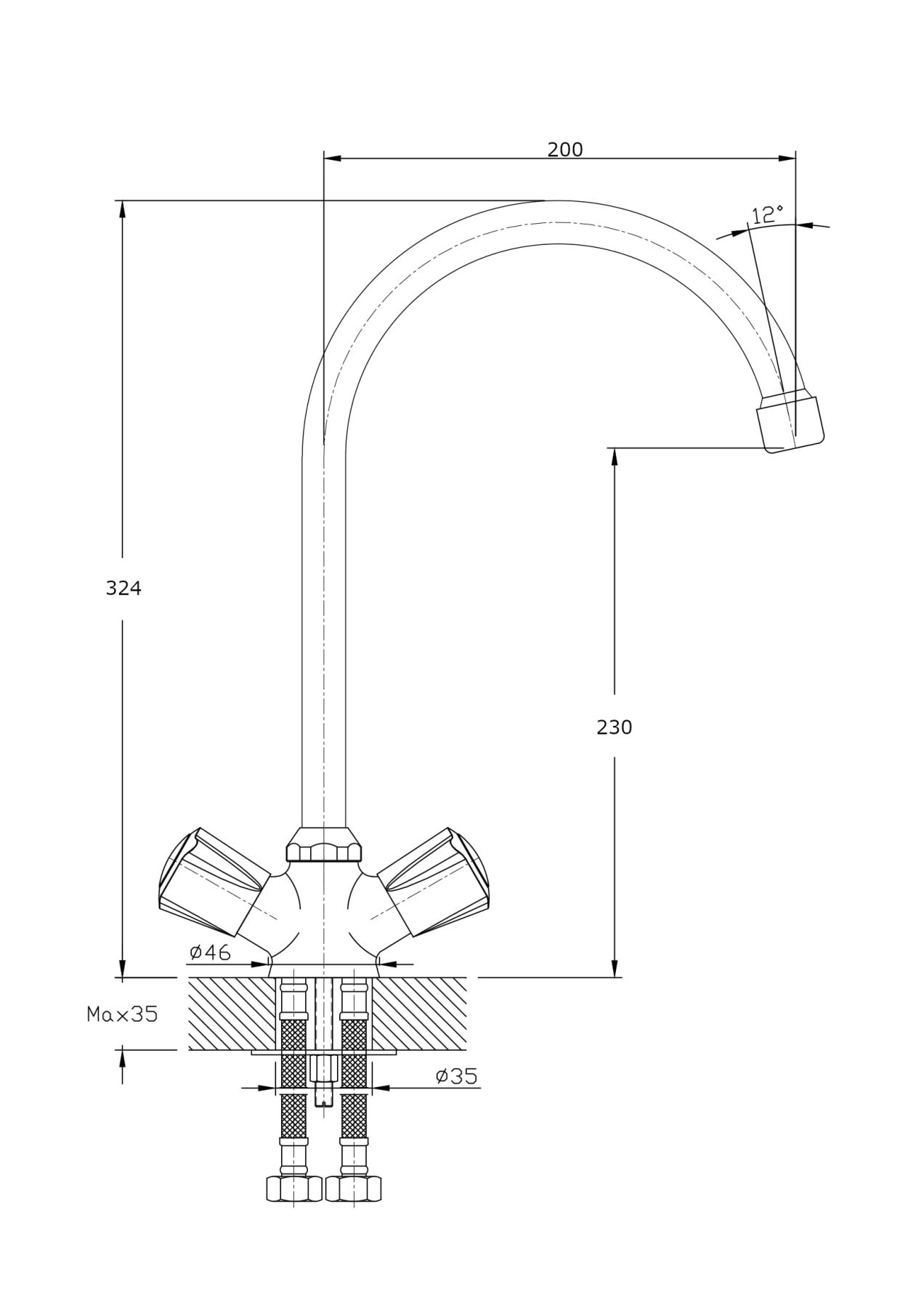 Смеситель для кухни с высоким, поворотным изливом RUSH арт. PI7950-23 с металлической ручкой из коллекции Pioneer изготовлен из высококачественной латуни и имеет вентильное управление.В смеситель установлены кран-буксы (RSH502) с керамическими пластинами. Высота смесителя 324 мм. Излив поворотный (360гр), 200 мм. Высота излива до аэратора 230 мм. Аэратор изготовлен из пластика с нержавеющим корпусом, угол наклона - 12 гр. В комплекте универсальная присоединительная группа (шпилька-2шт), гибкая подводка с латунными гайками 35см - 2шт, фум-лента, индивидуальный пакет, паспорт, гарантийный талон.