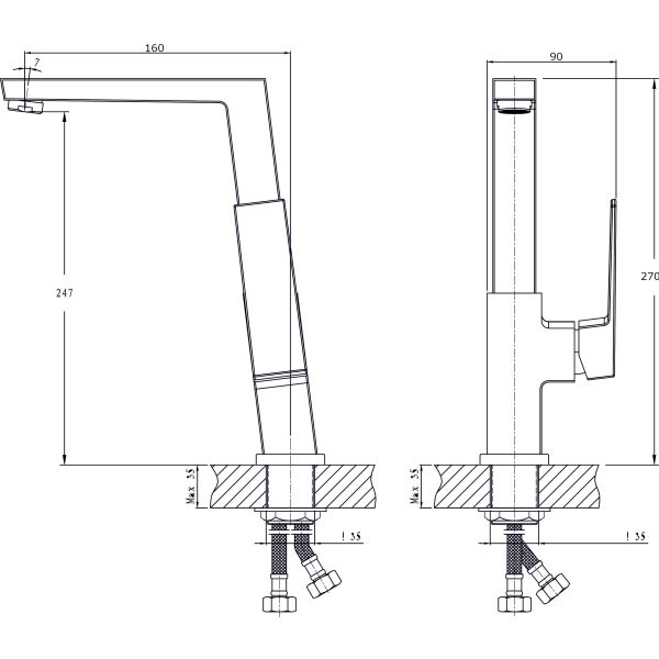 Смеситель для кухни с высоким поворотным изливом RUSH арт. TR3635-23 с металлической ручкой из коллекции Thira изготовлен из высококачественной латуни и имеет рычажное управление.В смеситель установлен картридж D-35 с керамическими пластинами. Высота смесителя 270 мм. Излив поворотный, 195 мм. Высота излива до аэратора 247 мм. Аэратор изготовлен из пластика с нержавеющим корпусом, угол наклона аэратора- 7 гр. В комплекте гибкая подводка с латунными гайками 35 см - 2шт, универсальная присоединительная группа, фум-лента, индивидуальный пакет, паспорт, гарантийный талон.