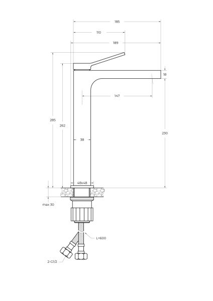 • Гибкая подводка : нержавеющая сталь G1/2, длина 600 мм.