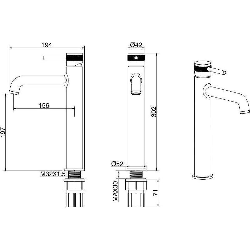 • Высота смесителя: