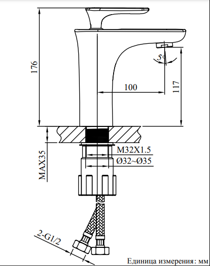 • Высота смесителя: