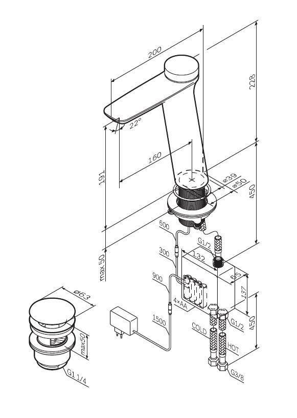 Высота смесителя:22.8