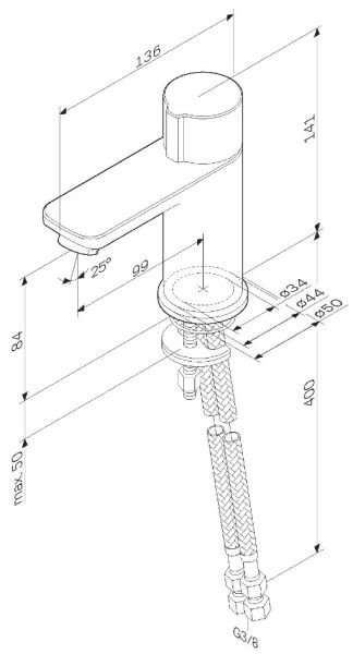 Идеальная геометрия, разработанная по стандарту SA (Smart Angle) – математические выверенное соотношение высоты смесителя, длины излива и наклона корпуса для удобного использования на умывальнике любого размера