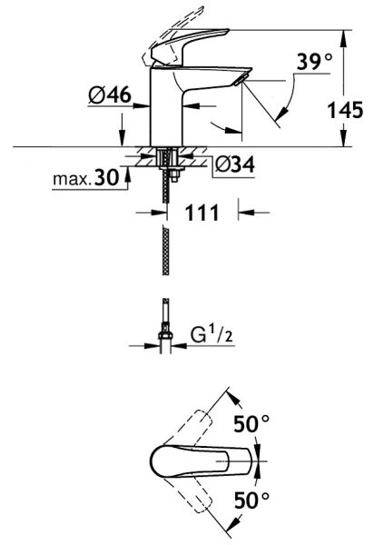 литой рычагмонтаж на одно отверстиеаэратор M 24 x 1керамический картридж с ограничителем горячей водыгибкая подводка G 1/2система быстрого монтажаИталия10 лет гарантии
