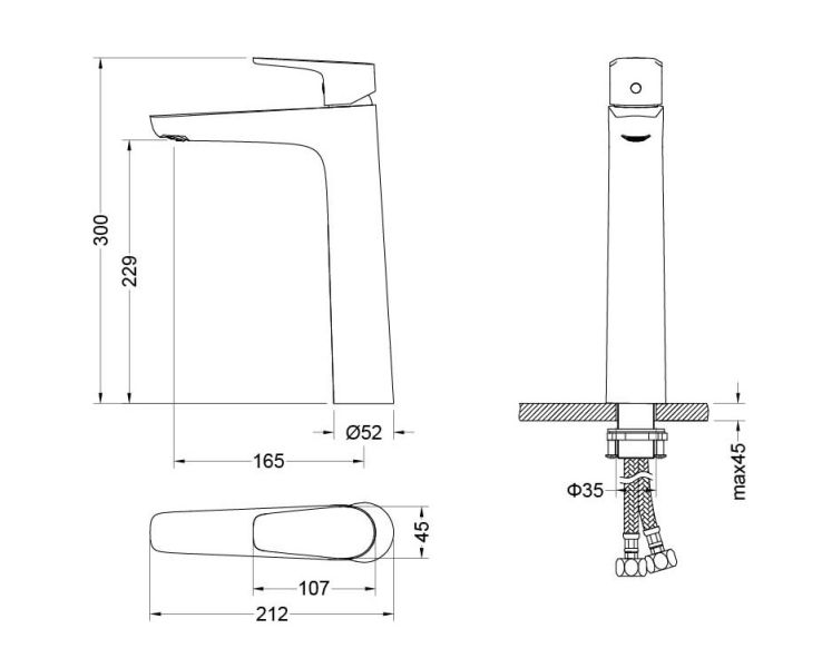 • Слив-перелив и донный клапан в комплект не входят Особенности смесителя AQ1104BGM• Однорычажная система регулировки силы струи и температуры воды