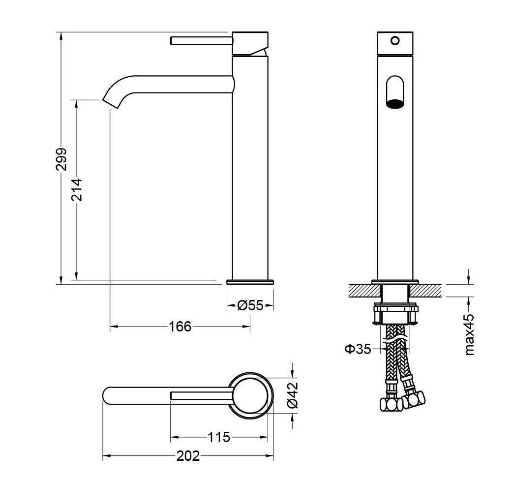 • Оснащен высоким изливом, удобен для мытья крупных предметов