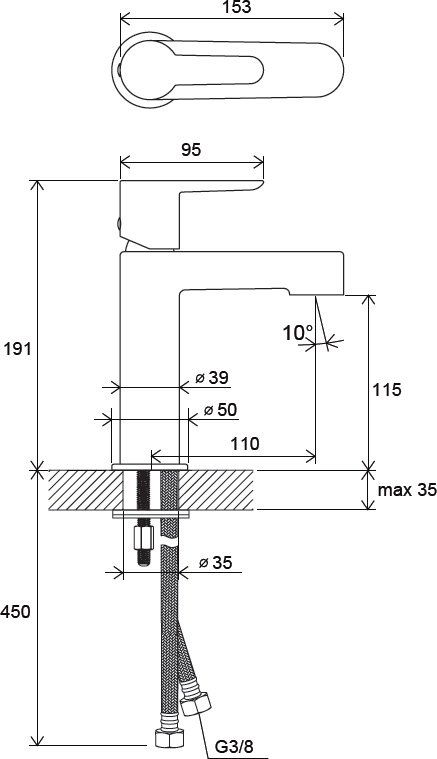 Высота смесителя:19