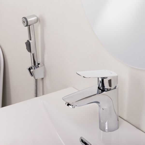 Смеситель для раковины без донного клапана с гигиеническим душем BelBagno DUE-LVM/HGN-CRM-W0