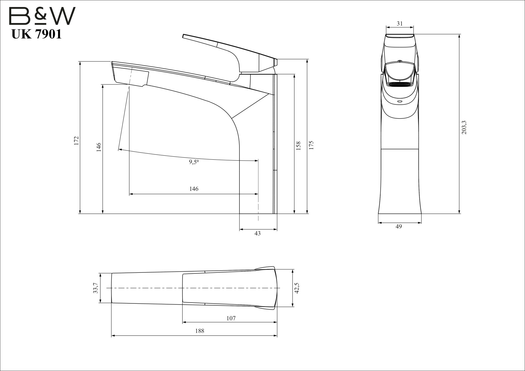 Смеситель для раковины датского производителя Black&White в черном матовом цвете. Материал корпуса выполнен в минималистичном стиле и изготавливается из сантехнической латуни.Сплав безопасен для здоровья и не подвержен коррозии весь срок службы изделия. Для управления потоками воды установлен керамический картридж повышенной пропускной способности, установленный сверху корпуса. На изделии имеется вытяжной излив с аэратором для комфортного использования в бытовых нуждах.