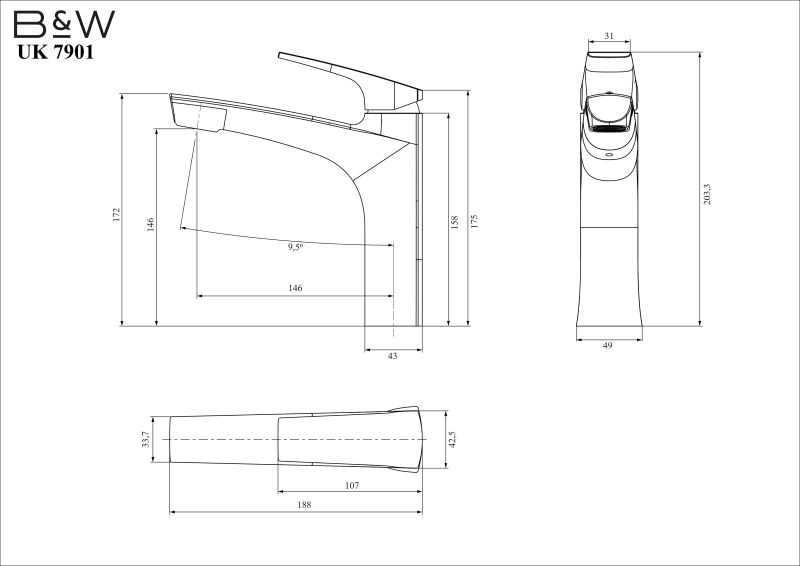 Смеситель для раковины Black&White Universe 7901С с выдвижным изливом хром купить