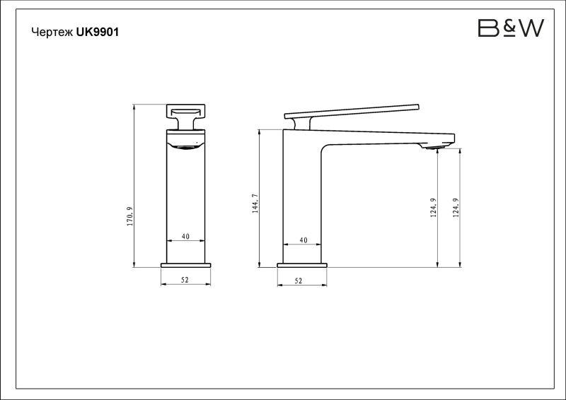 Смеситель для раковины Black&White Universe 9901MG оружейная сталь