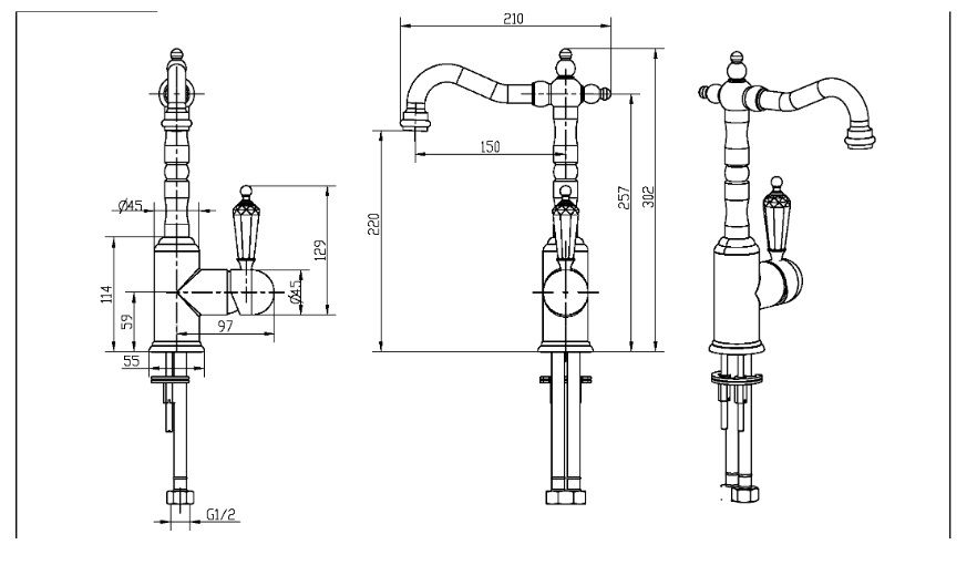 Смеситель Boheme Imperiale Ripresa 322 для раковины превосходно подойдет в вашу ванную комнату и дополнит интерьер. Смеситель Boheme Imperiale Ripresa несомненно подойдет почти на любую раковину. Однорычажные модели смесителей – это более современный вариант регулировки воды, легкий в управлении и эстетически стильный в дизайне.Латунь, кристаллы Swarovski использованная в конструкции смесителя Boheme Imperiale Ripresa 322 соответствует всем необходимым стандартам качества и является абсолютно безвредной для здоровья. Излив смесителя Boheme 322 длиной 15 см и высотой 22 см обеспечит идеальное и комфортное использовании при принятии водных процедур. Конструкция модели Boheme Imperiale Presente позволяет роскошно установить смеситель на столешницу, на раковину. Смеситель для раковины Boheme 322 выполнен в стиле ретро, что идеально прослеживается в его форме. Родина бренда Boheme – Италия, все смесители произведены с высокой точностью и грамотностью технологического процесса. Смеситель Boheme Imperiale Ripresa 322 для раковины это незаменимый элемент для создания уюта и комфорта в ванной.