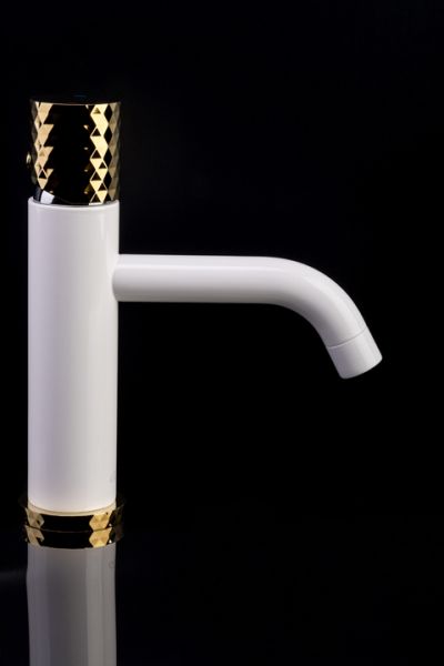 Смеситель для раковины Boheme Stick White diamond белый/золото 121-WG