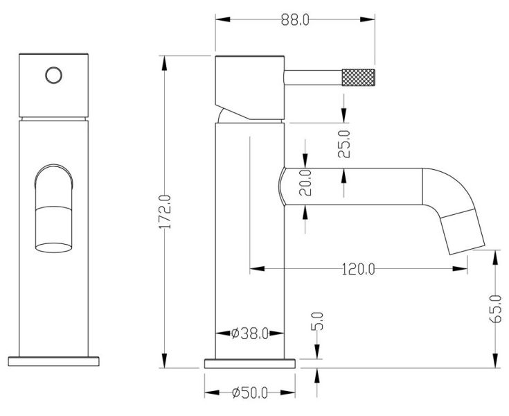 • Высота смесителя: