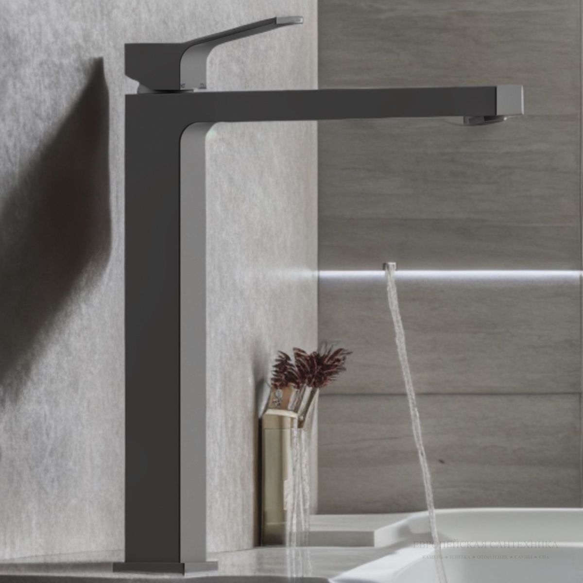 Bossini Aki-T смеситель для раковины, высокий, донный клапан Click-Clack, цвет Matt Black.