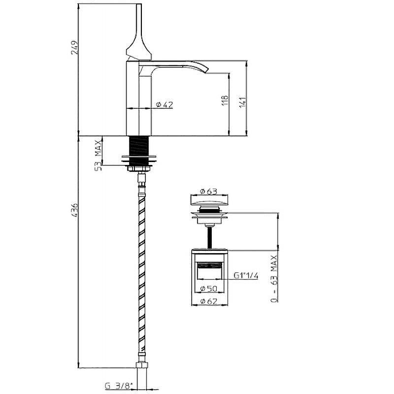 Однорычажная конструкция смесителя позволяет легко и плавно управлять потоком воды и регулировать её температуру одним движением руки, что делает его использование удобным и интуитивно понятным. Высота 249 мм обеспечивает достаточное пространство для удобного мытья рук и комфортного использования раковины.