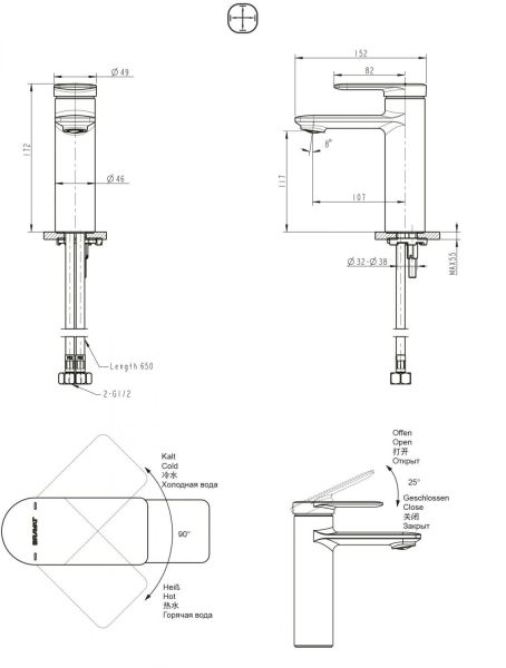 • Высота смесителя: