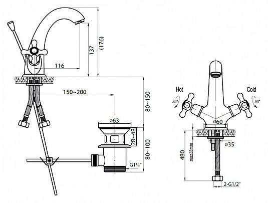 Рабочий интервал давления в водопроводной сети: 0,5-6,0 Атм