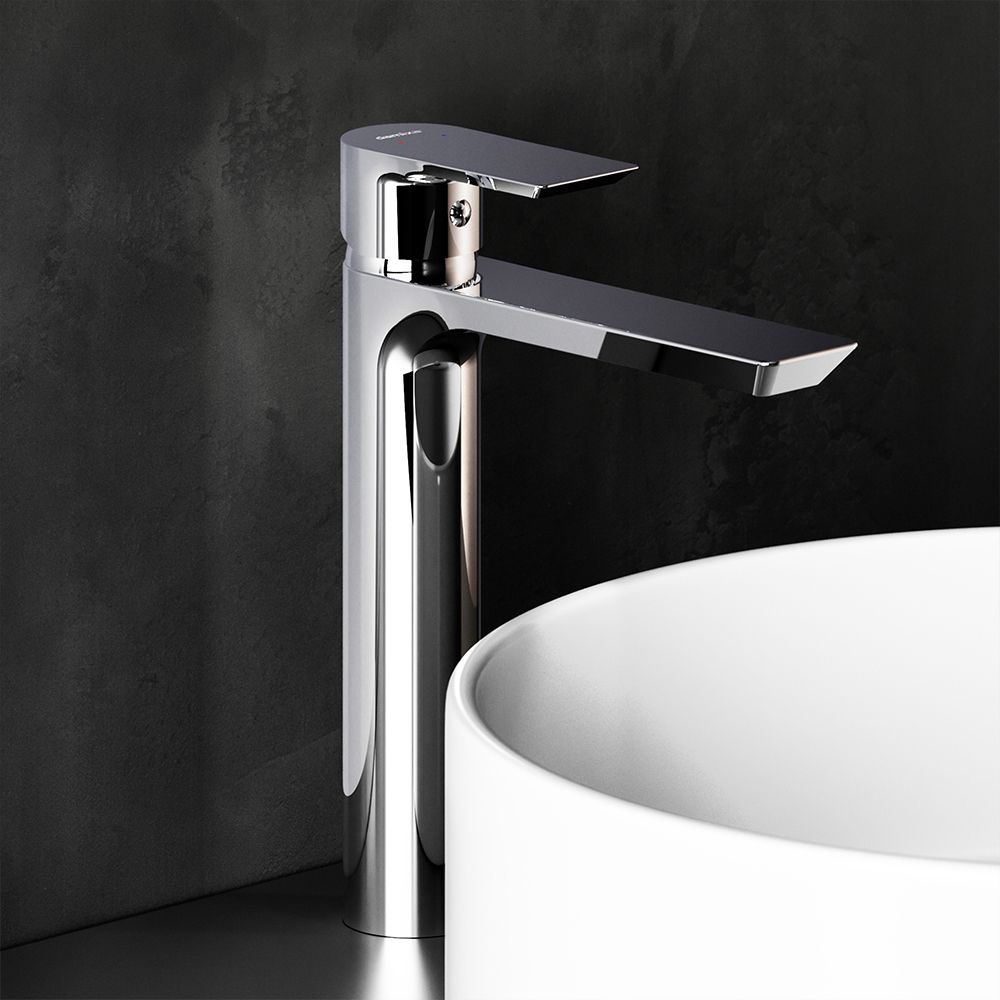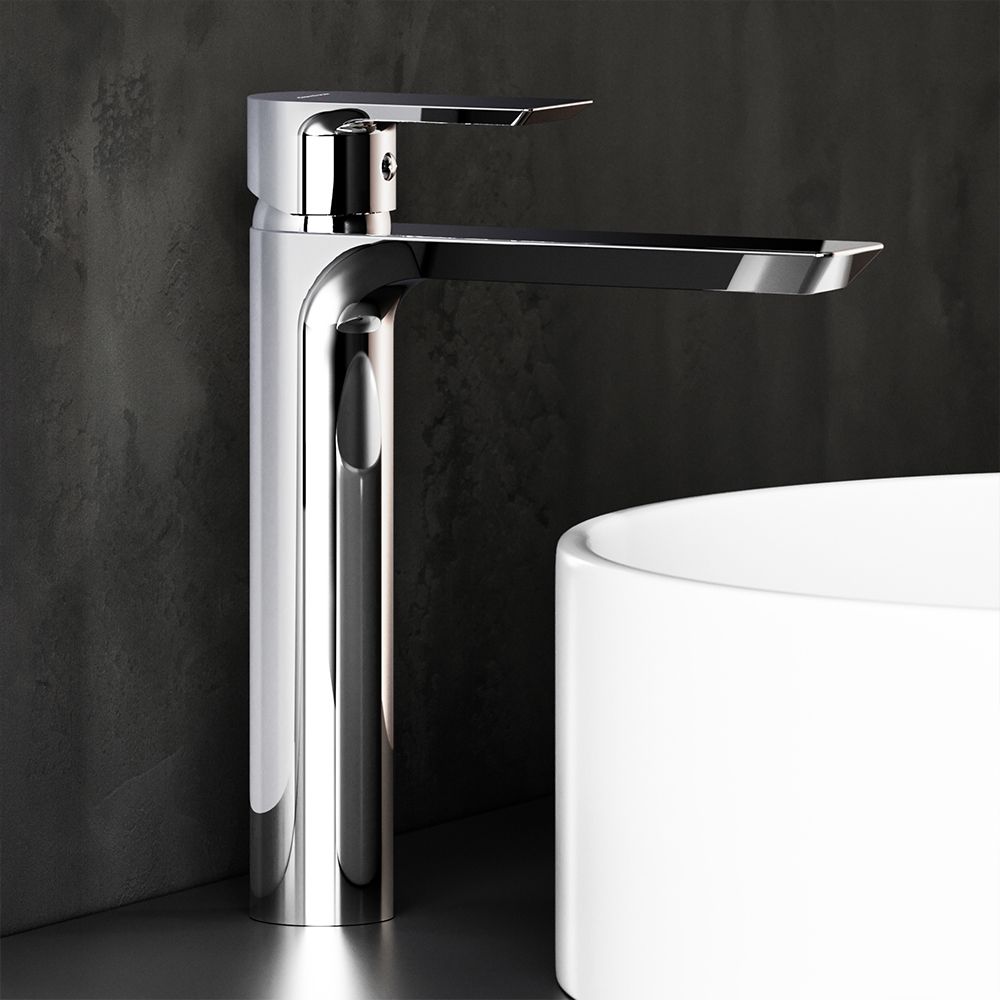 Смеситель для раковины Damixa Apollo 470250000 хромКорпус смесителя 1 шт.; подводка для воды 2 шт.; комплект крепления 1 компл.; инструкция изделия. Хром, высокий смеситель для накладных раковин, одноручковый, латунь,керамический картридж, ручка и излив имеют плоскую форму