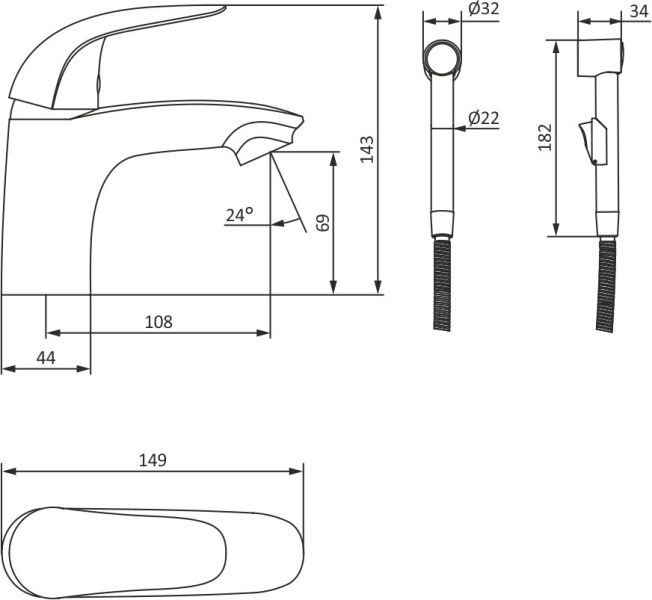 Смеситель для раковины Damixa Eclipse 310300001 с гигиеническим душем, хром