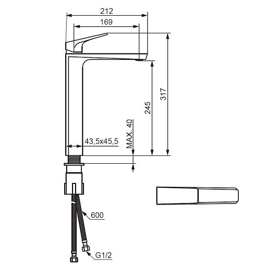 • Высота смесителя: