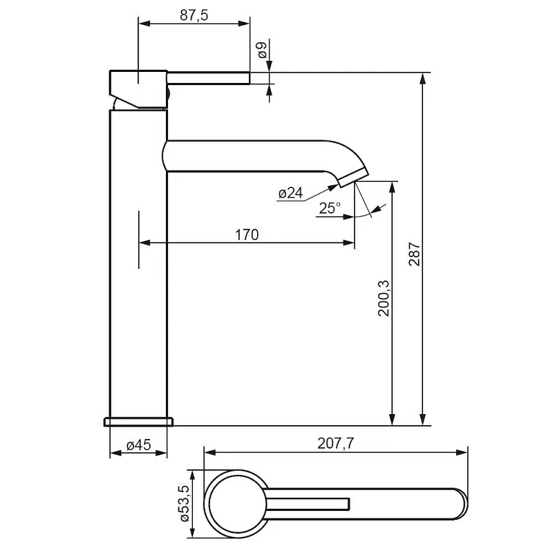 • Высота смесителя:
