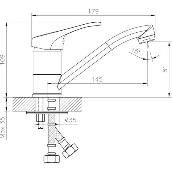 • Высота смесителя: