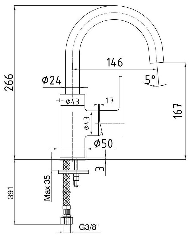 Высота смесителя:26.6