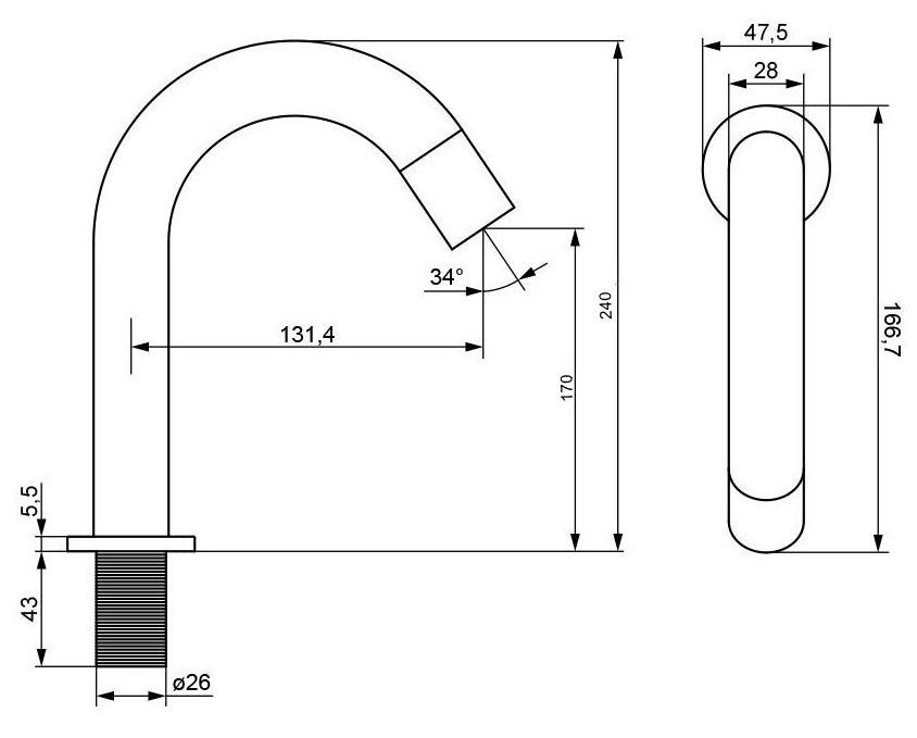 • Длина излива, см: