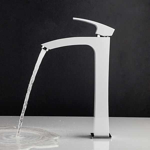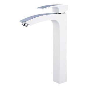 Смеситель для умывальника Gappo Jacob G1007-18 - однорычажная латунная модель с высоким изливом, для монтажа на столешницу, подходит для высоких умывальников. Цвет - хром / белый.