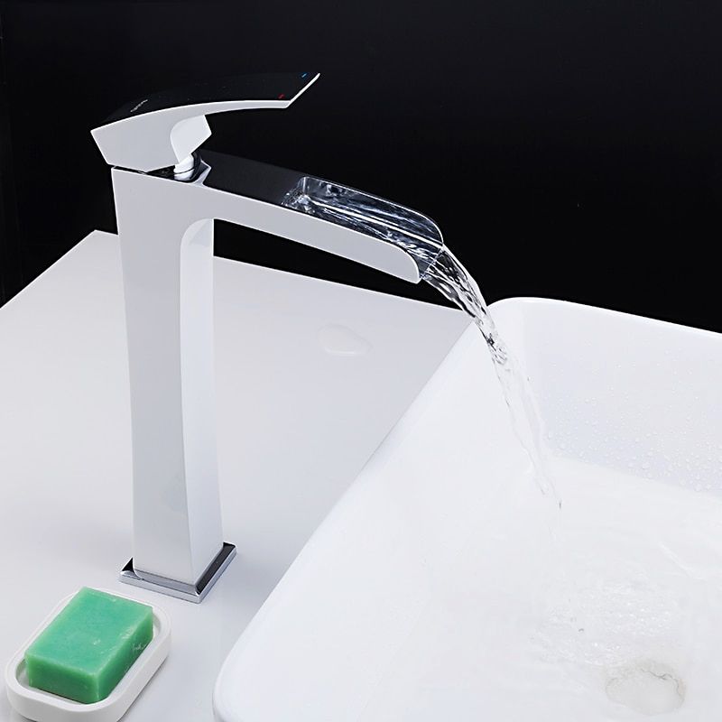 Смеситель для умывальника Gappo G1007-31 - надежная высокая однорычажная модель c каскадным носом-изливом, с открытым желобом. Изготовлен из латуни в корпусе которого находится картридж 25 мм. Благодаря своей форме и современному дизайну идеально подойдет к любому интерьеру. Цвет - хром / белый.