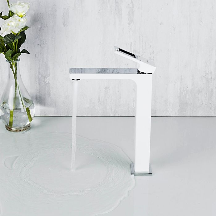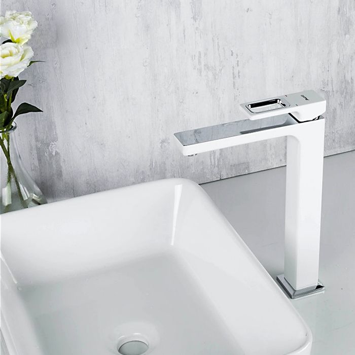 Смеситель для умывальника Gappo G1017-2 - надежная однорычажная латунная модель с высоким изливом. Подходит для умывальников, монтируемых на столешницу. Цвет - белый.