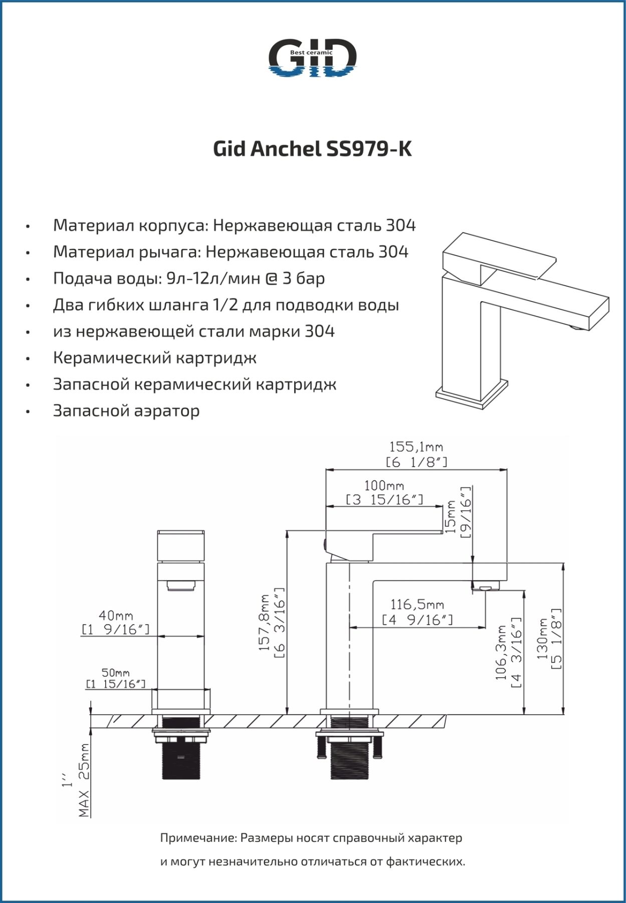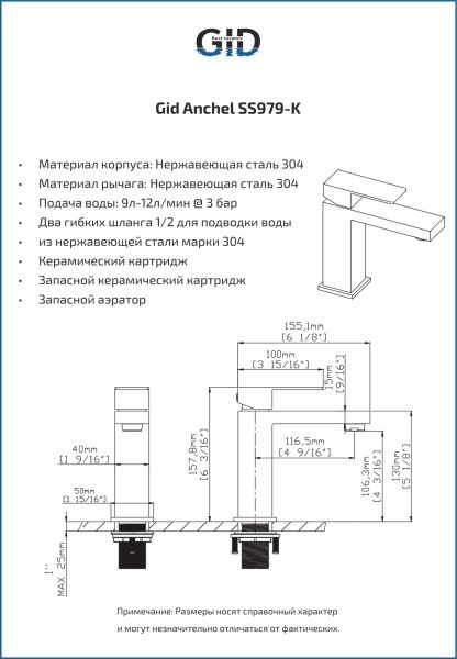 Смеситель для раковины Gid Anchel SS979-BM-K SS979BMK черный матовый