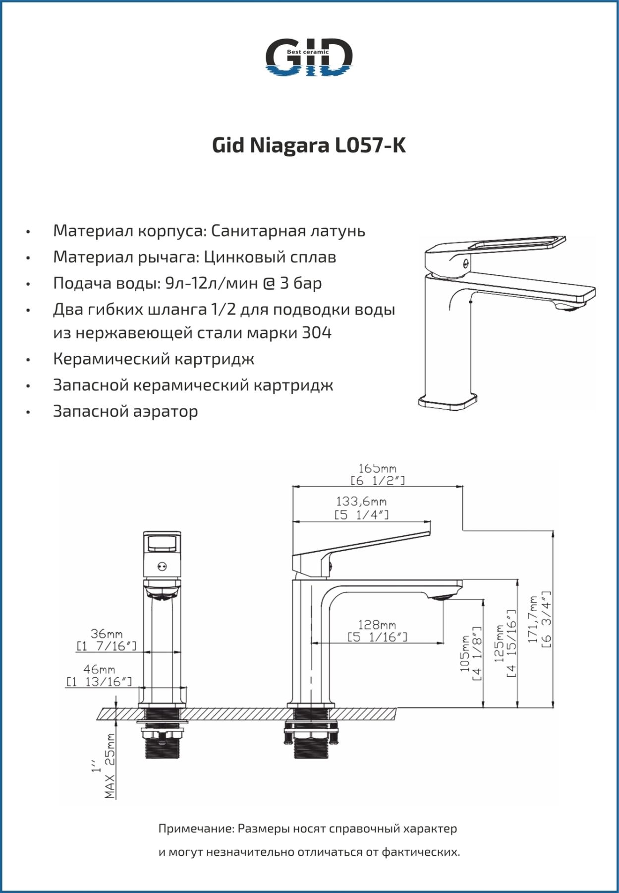 Смеситель для раковины Gid Niagara L057-BM-K L057BMK черный матовый