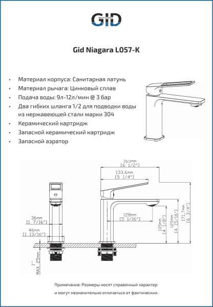 Смеситель для раковины Gid Niagara L057-BM-K L057BMK черный матовый купить