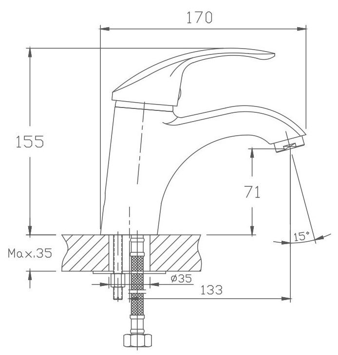 Смеситель для раковины Haiba.Керамический картридж 40 мм.Изготовлен из латуни.Максимальная глубина монтажа 35 мм.Диаметр монтажного отверстия 35 мм.