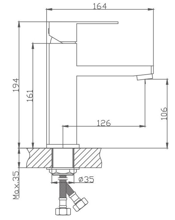 Смеситель для раковины Haiba.Керамический картридж 35 мм.Изготовлен из нержавеющей стали.Максимальная глубина монтажа 35 мм.Диаметр монтажного отверстия 35 мм.