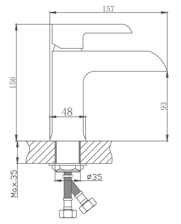 Смеситель для раковины Haiba.Керамический картридж 35 мм.Изготовлен из латуни.Максимальная глубина монтажа 35 мм.Диаметр монтажного отверстия 35 мм.